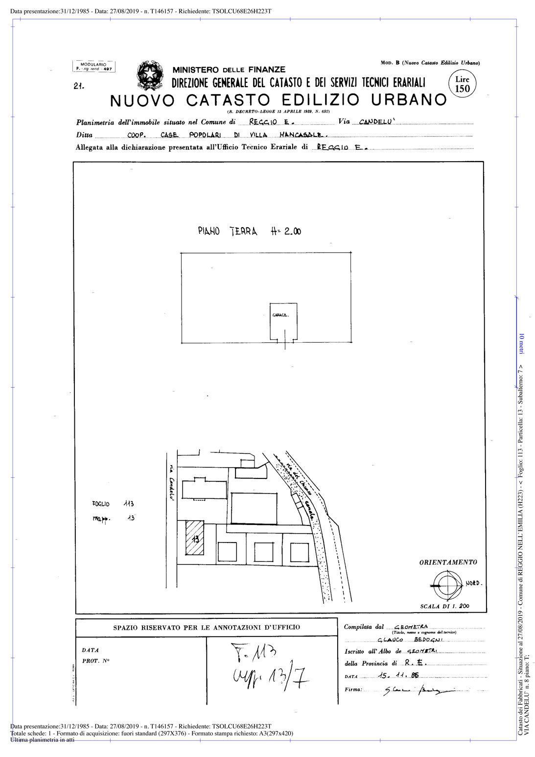 UBICAZIONE: VIA CANDELU’ 8 – REGGIO EMILIA